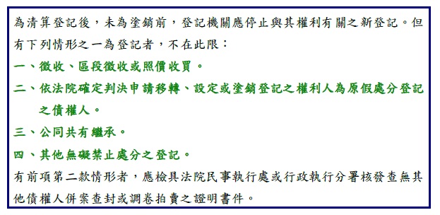 以上便是本週電子報所介紹土地登記規則中,其關於更正登記、限制登記中等較常用到之規定或註記事項之相關介紹,下週則將繼續從『塗銷、消滅、及其他登記』進行介紹。