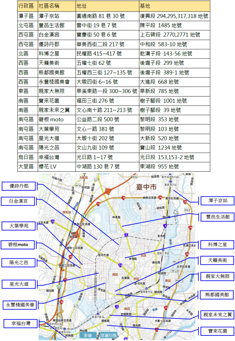 就筆者所知道的台中爛尾樓整理如下表、圖: