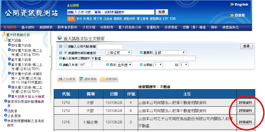 此兩種平台的優劣,在於公開資訊觀測站版面採分段條列式說明,閱讀容易,惟需逐一從下拉式選單選擇上市、上櫃公司等選項;不動產資訊平台未分段,閱讀困難,但不用逐一從下拉式選單選項分次搜尋。