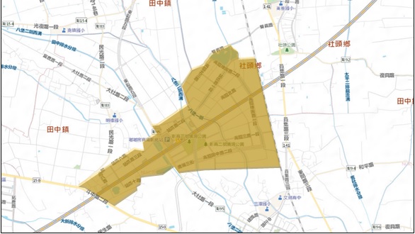 彰化高鐵特定區橫跨了田中鎮與社頭鄉,本區以高鐵彰化車站為中心,東邊以縱貫鐵路為界,西邊到斗中路(縣150),北邊緊鄰社頭都市計畫區,南邊則到龍潭社區北側。